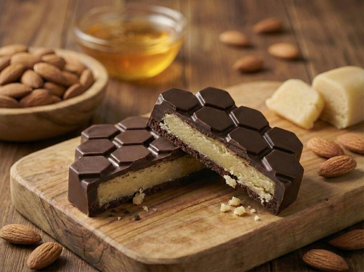 Besonderheit: Zartes Edelmarzipan umhüllt von geschmeidiger Honigschokolade; natürliche Süße nur aus Honig